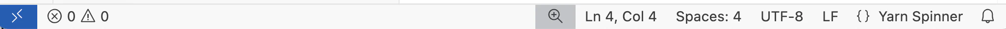With your .yarn file open in VS Code, you can verify that the Yarn Spinner for Visual Studio Code Extension is active by looking in the bottom right-hand corner of the screen, and locating the words “Yarn Spinner”.